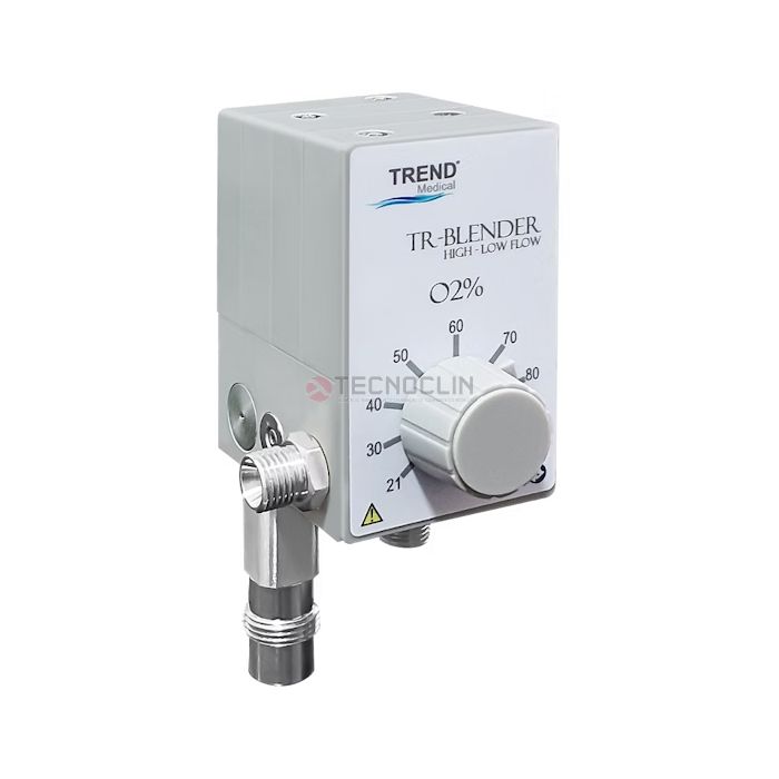 O Blender Externo Misturador de ar com oxigênio, permite administrar concentrações precisas de 21 à 100% de oxigênio e é ideal para uso em respiradores, nebulizadores, tendas, etc. (Com ou Sem suporte)