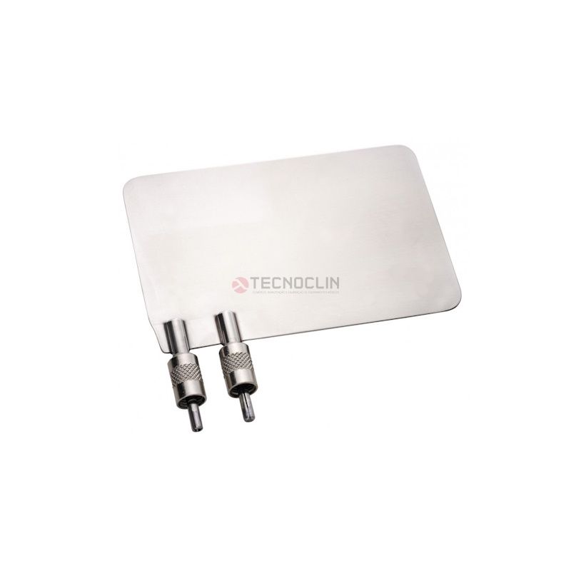 Placa de Aço Inox 80mm X 120mm PP-041Similar a placa WEM PP-06Placa de aço inox re-usável PP-041, 80 x 120mm, conector com 2 pinos banana macho (Ø 3,97 mm)Placa de Aço Inox Tamanho pequena 8 x 12cm