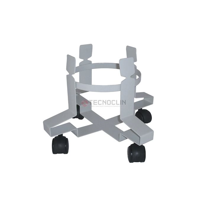 Suporte para frasco, confeccionado em aço, sobre rodízios, com pintura eletrostática de alta resistência.