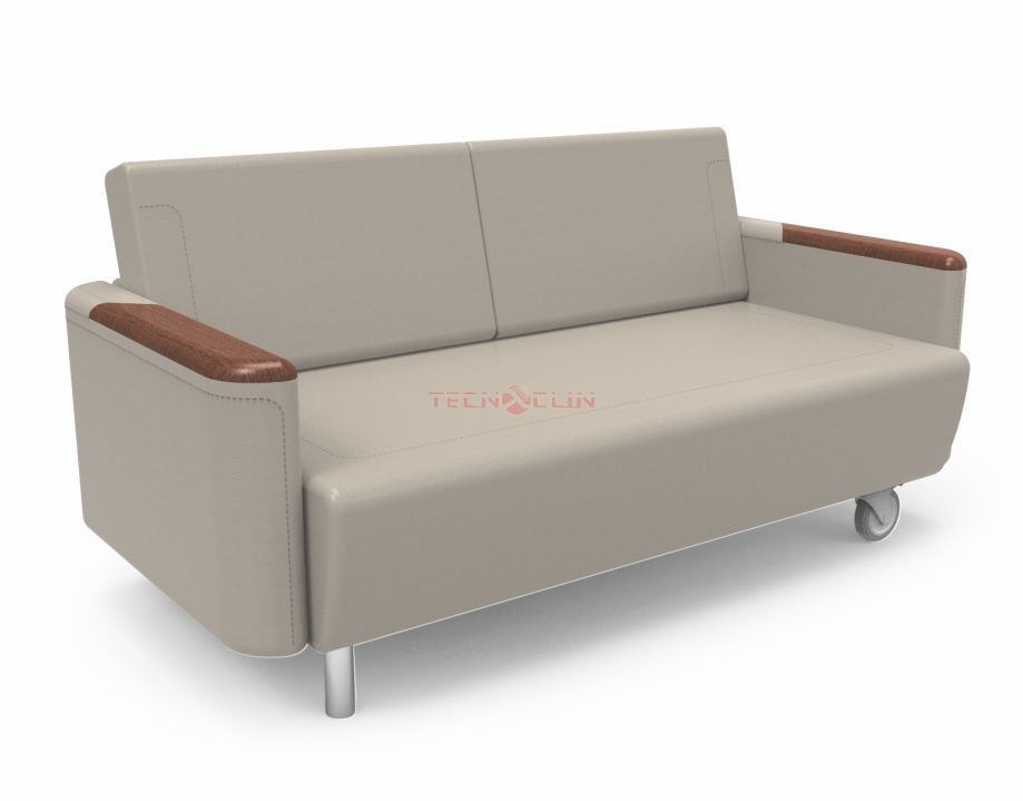 Braços deslizantes, transformando a área do assento em uma cama. Detalhe em madeira envernizado opcional.